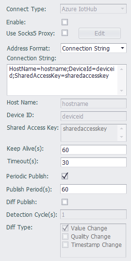 When connecting to the Microsoft Azure cloud, the connection type must be Azure IoTHub, and the client needs to configure the connection string provided by the cloud.