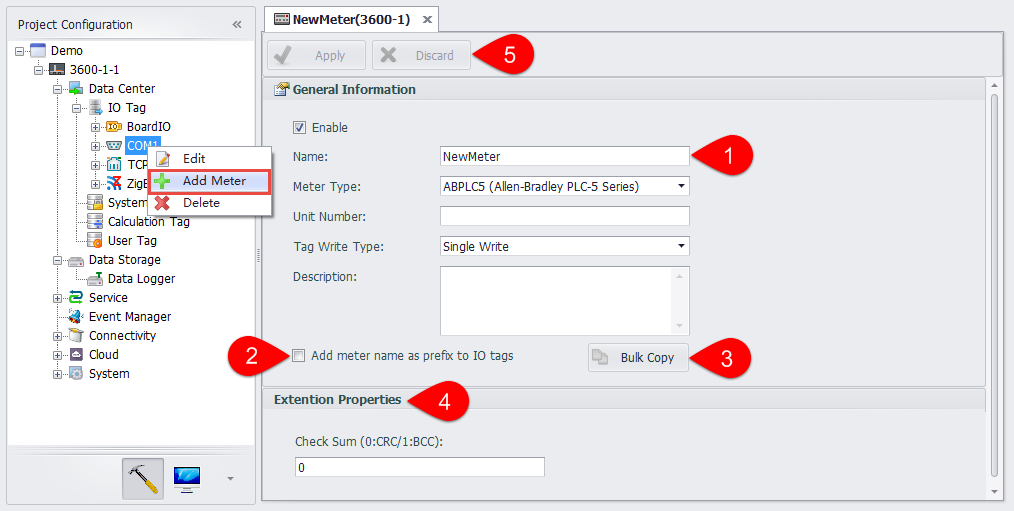 1.Fill in the device name information, select the device type, set the device unit number, IO tag write mode, fill in the description information (optional).