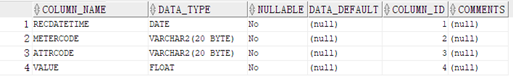 4. TableName: The table in Oracle that stores data. This version of the data upload mechanism is that all data that needs to be backed up on the device side is stored in this table on the database side. The database does not need to be created manually. When the device uploads data, the table will be created automatically if it does not exist, and must start with a letter. Table 2 is the table structure.