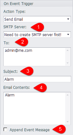• Send mail: supports sending an alert message to the specified mailbox via the SMTP server.