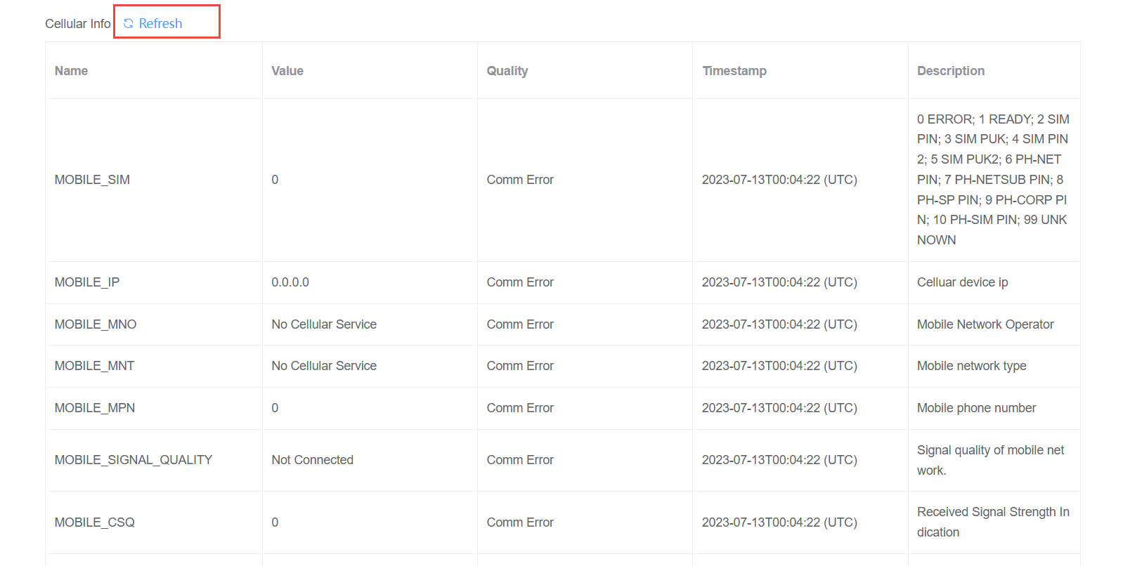 Cellular-related system tag, in order to avoid traffic waste, please click the "Refresh" button to update the current status every time you view it