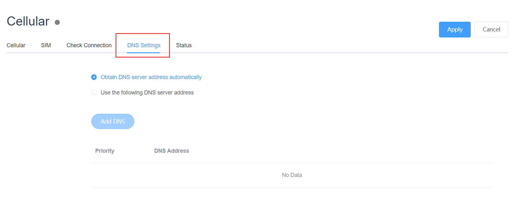 The default is to obtain DNS automatically, or you can configure it manually