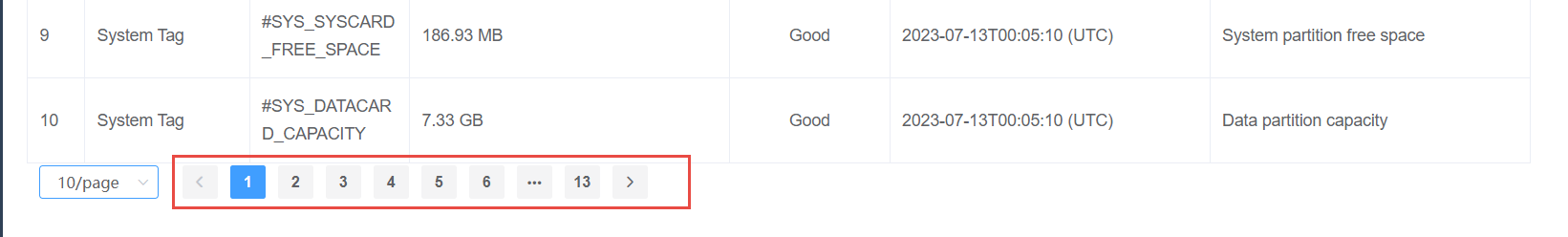 1. The default number of displayed rows of the page is 10 rows, or you can choose to display the number of rows per page::10\20\50\100
