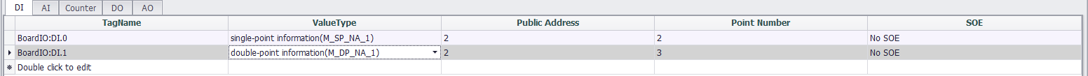 3. At the bottom of the interface is the tag corresponding table, including DI, AI, Counter, DO, AO five types of data tags.