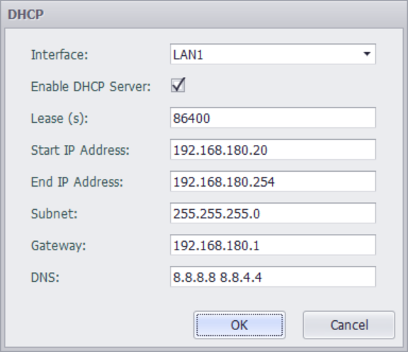 • DNS: Configure the DNS address assigned by the DHCP Server to the client. Multiple DNS addresses are separated by spaces.