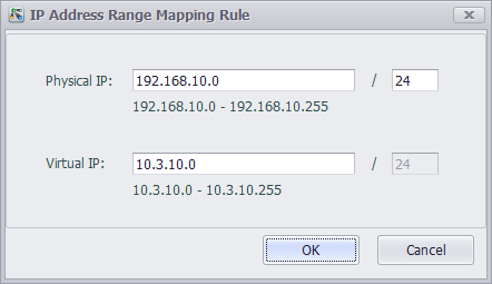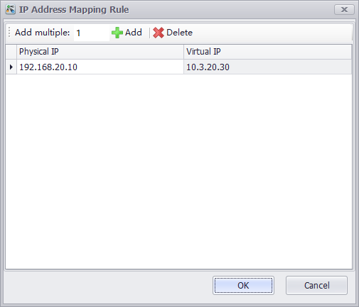 • IP Address Mapping: Add the mapping between physical IP and virtual IP (edit IP Address as you need).