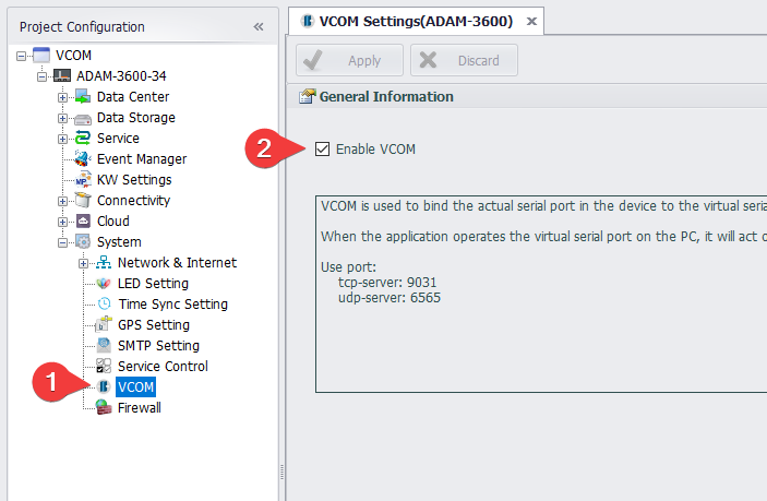 - Enable the VCOM function on the gateway using EdgeLink Studio and download the configuration file to the gateway.