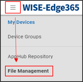 step 1. Click on "File Management" in the EdgeSync 360/EdgeHub interface