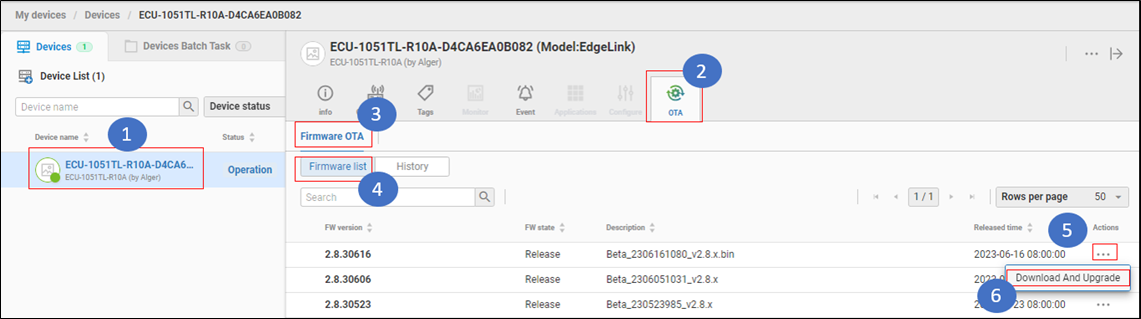 Click on "Firmware list" under "Firmware OTA" to view all files available for upgrade