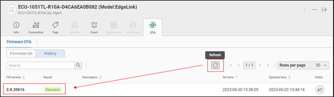Click on the "Refresh" button to refresh the current upgrade status until you see "Success", which means the upgrade was successful