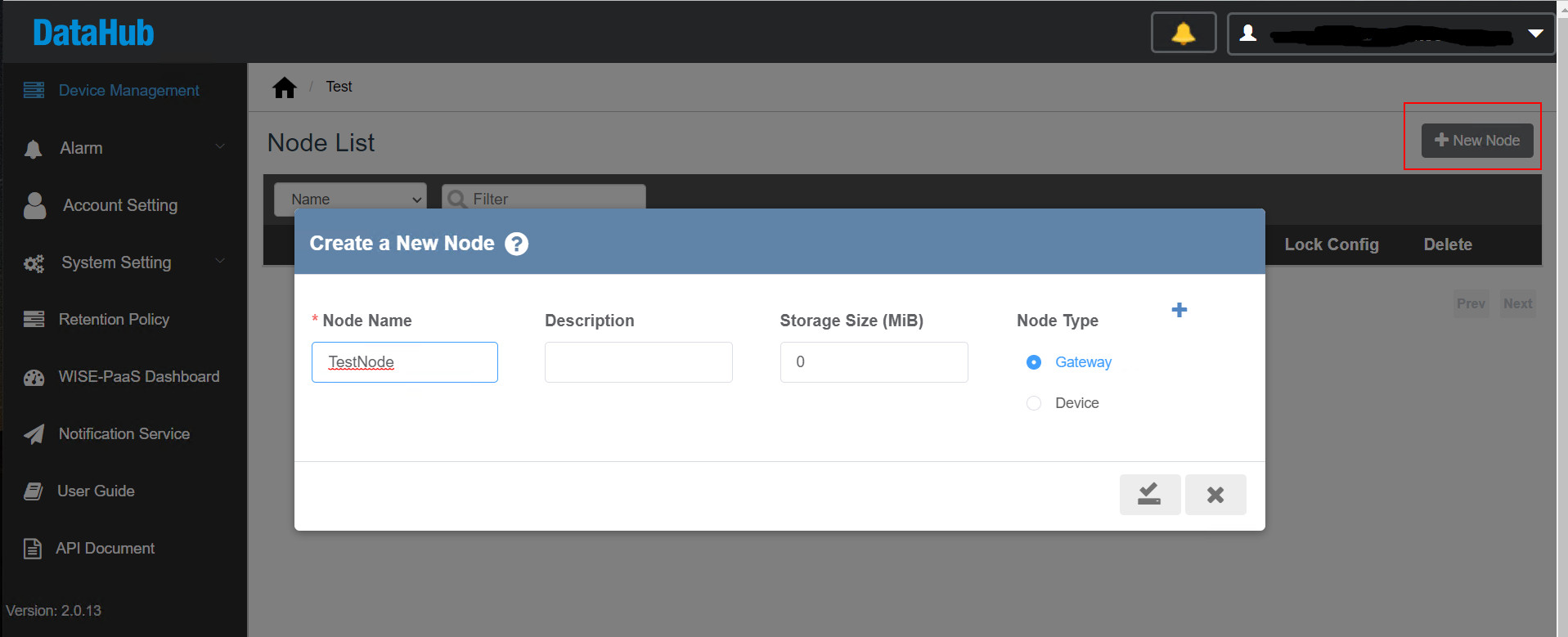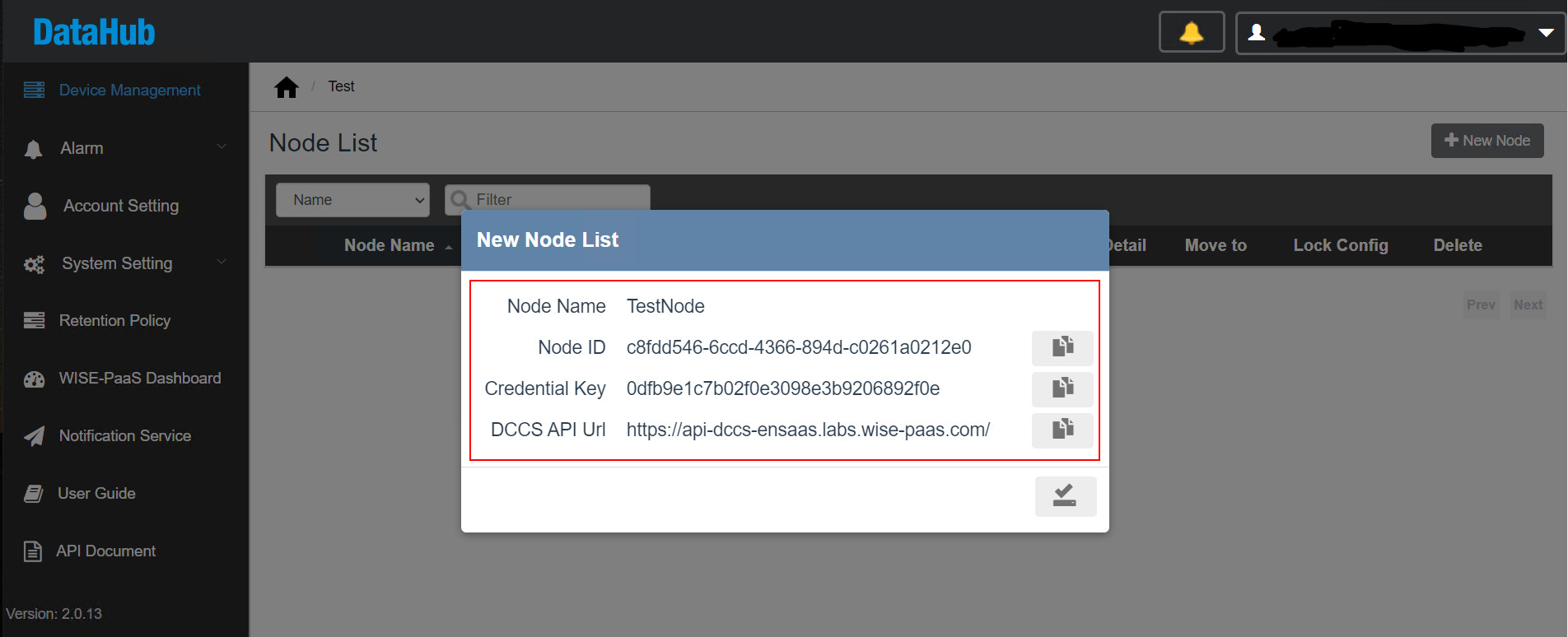 Credential KeyRequired. Generated when creating a Node in WISE-PaaS/DataHub.