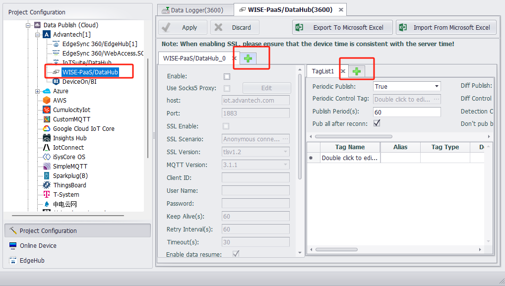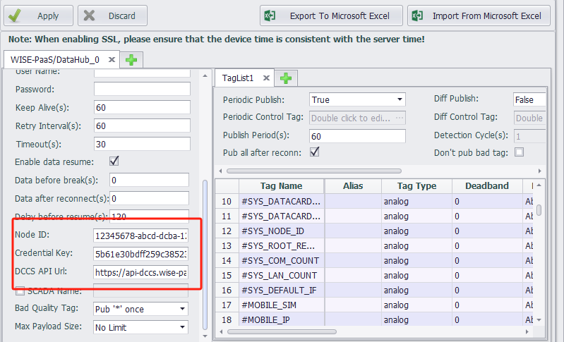 • Add the tag list to be uploaded to WISE-PaaS/DataHub;