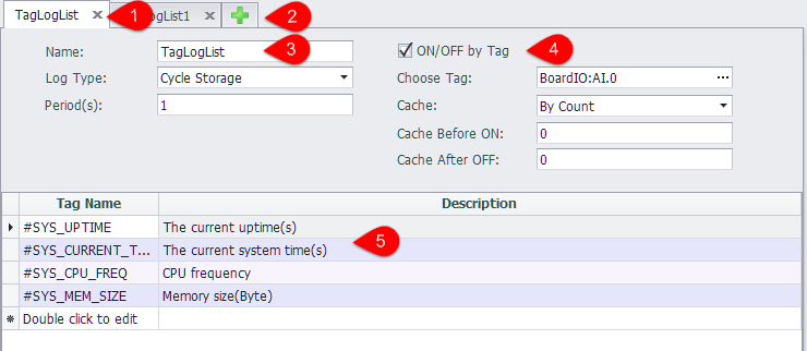 • Cache mode: when the control tag ON and OFF, it will cache a certain amount of data. In the cache mode, you can choose to cache log information by count or time.