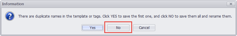 Whether it is append or overwrite, it will judge whether there is a template duplicate name and a tag duplicate name. If there is a duplicate name, it will be highlighted in the preview panel, and you can choose to rename the duplicate template or tag.