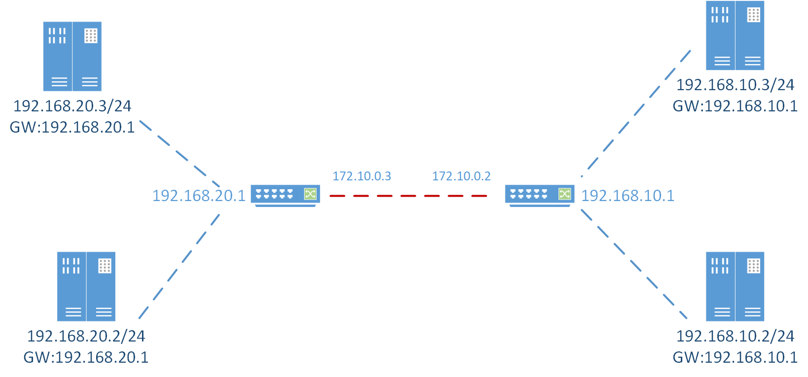 服务器IP地址及两边网段配置如下所示