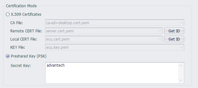 PSK模式时,Remote ID,Local ID都需要根据服务器配置设置。