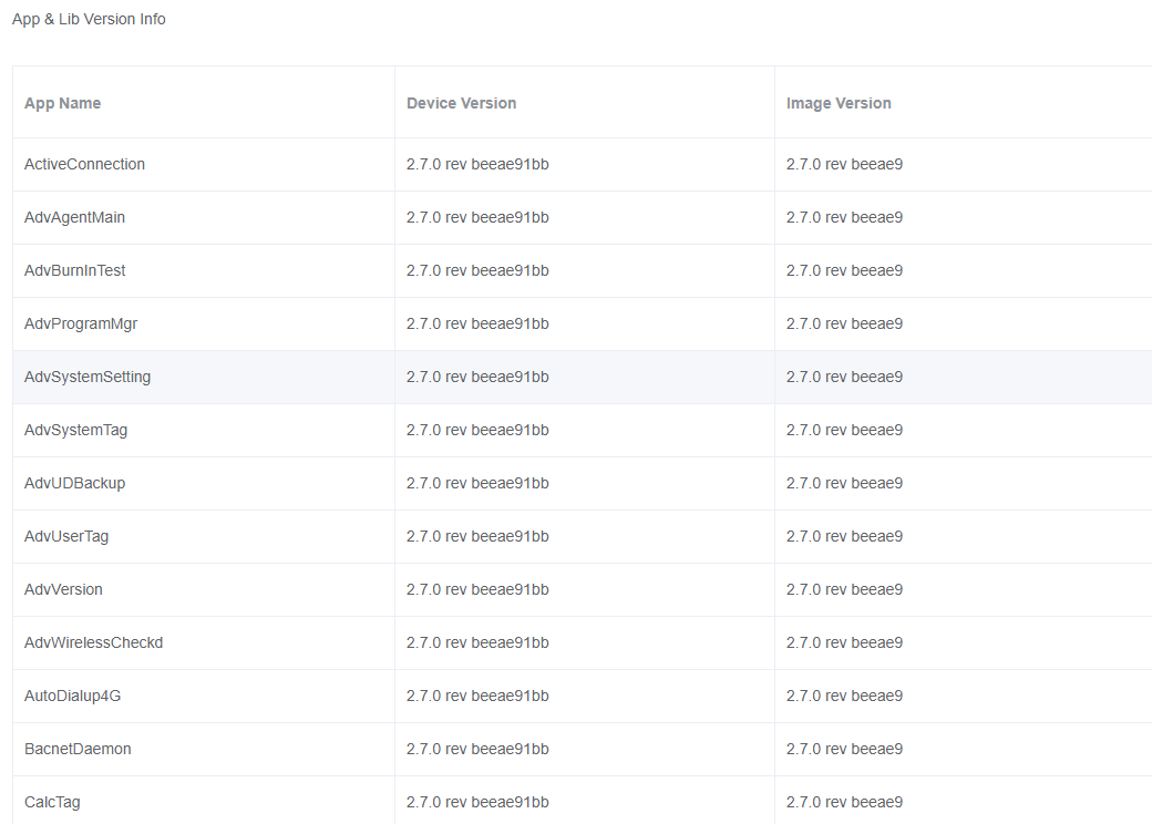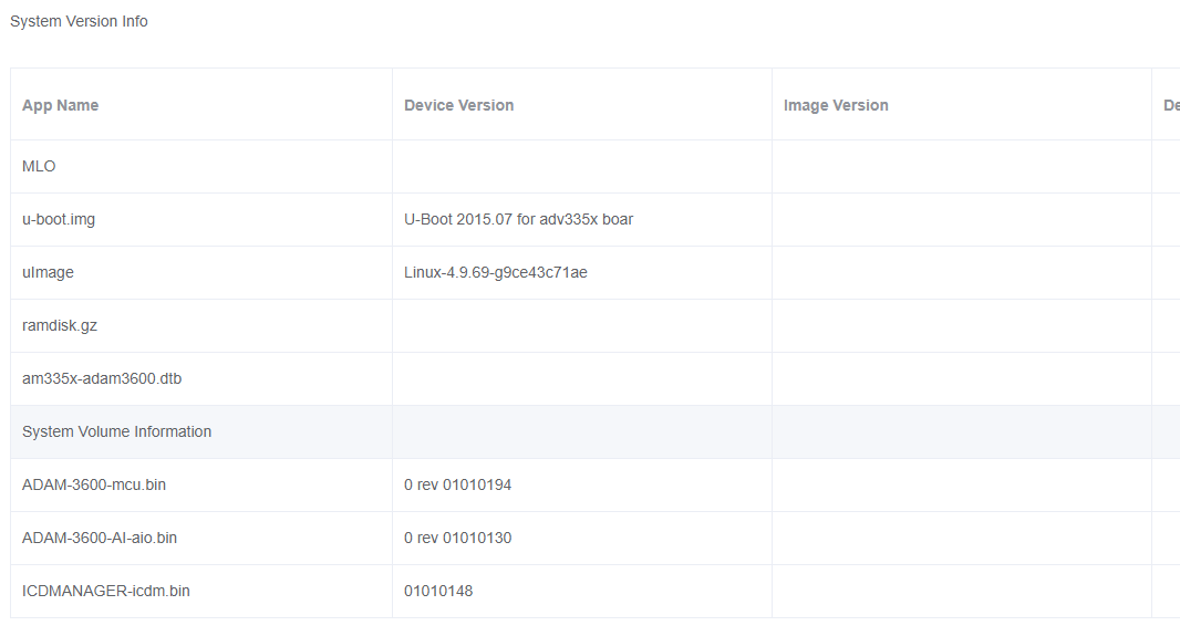 If the file is successfully uploaded, the 'Update Image' button will be displayed, as shown in the red box above. At the same time, the version number of each file in the uploaded package is listed, as shown in the following figure.