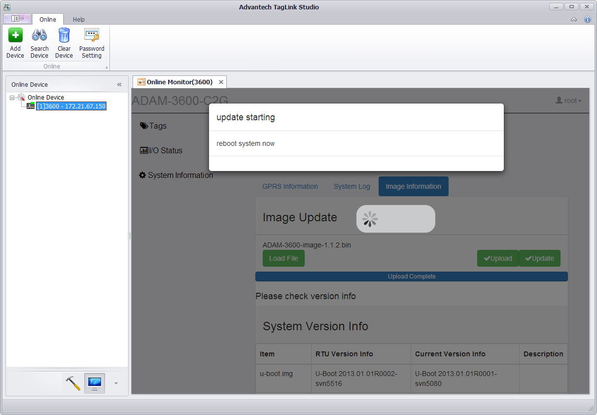 Click Update to start the Image update, and the update process is shown in the following figure.