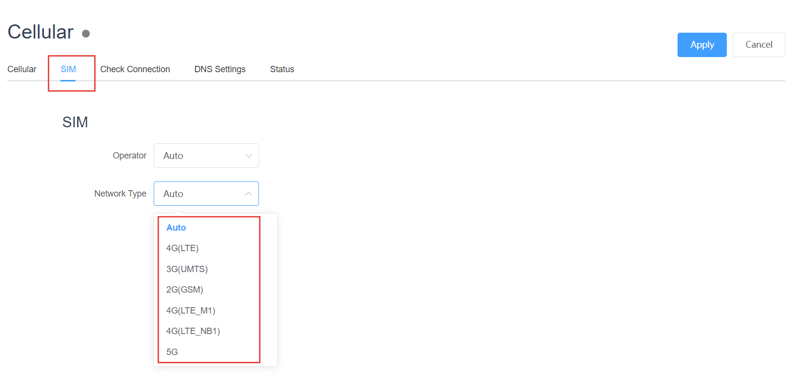 3. Dialing type: PPP or QMI (depending on module)