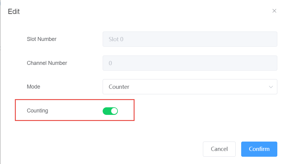 When the DI channel operating mode is Counter, you can choose whether to enable Counter counting by starting counting: