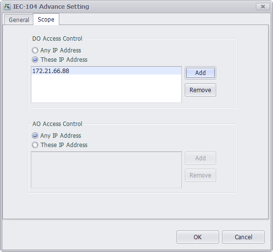 Users can set to allow only some IPs to modify the values of DO and AO in IEC-104.
