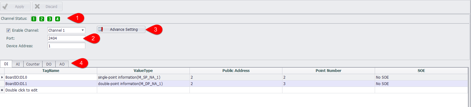 2. Port:the default is 2404, and each channel needs to have a different port number.
