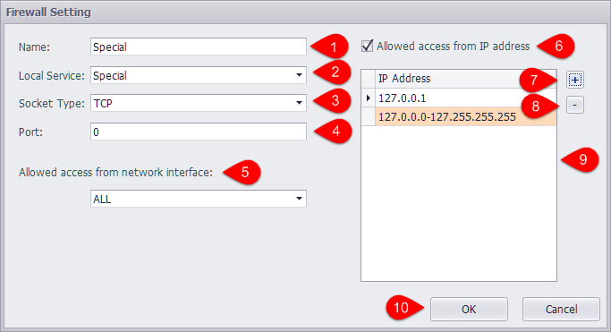 When the firewall is started, only the connections in the firewall list are allowed to access the device.
