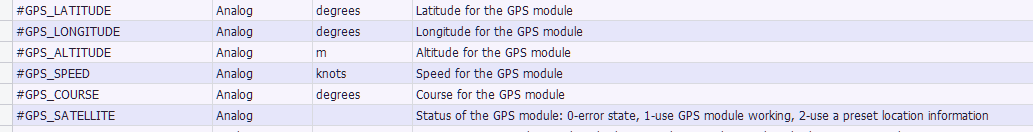 • The GPS module works when the value is 1.