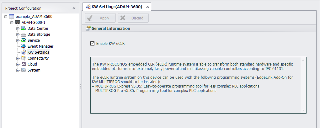 "KW Settings" allows the user to configure the start and stop of the KW function. When "Enable KW eCLR" is checked, eclr will be enabled when the device starts. If it is not checked, eclr will not be enabled.