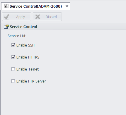 systemsettingService Control本頁導覽Service Control Set the following services in system startup or not. SSH and HTTPS is enabled by default. Telnet and FTP server is disabled by default.